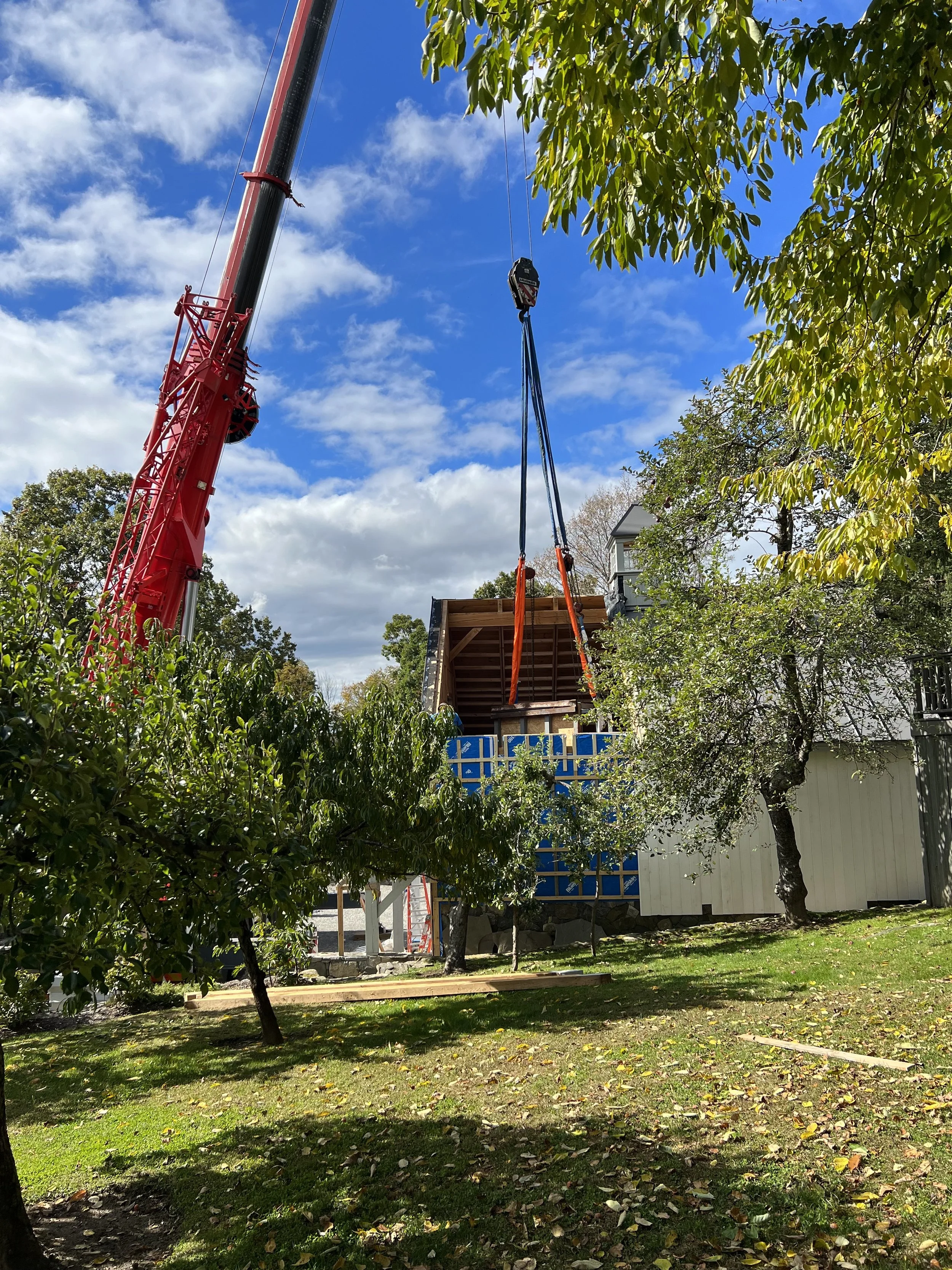 Once we arrived onsite, the final step was just as bold: removing the roof of the house.